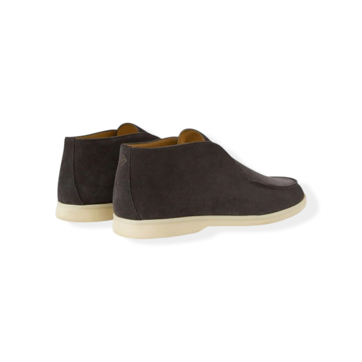 Stor i storleken – välj en storlek mindre än normaltKlassiska loafers i mocka med mellanhögt skaft och vattenavvisande, smutsresistent behandling. Till största delen handgjorda – denna mjuka och lätta modell erbjuder maximal komfort tack vare sin välgenomtänkta konstruktion och flexibla gummisulor. På hälen finns ett särskilt område där du kan skriva ditt namn – en omtyckt tradition bland seglingsentusiaster. Perfekta för somrar till sjöss eller på stranden. Matcha dina Loro Piana-skor med en t-shirt i baby cashmere eller en Wish-piké för en elegant och avslappnad sommarlook.