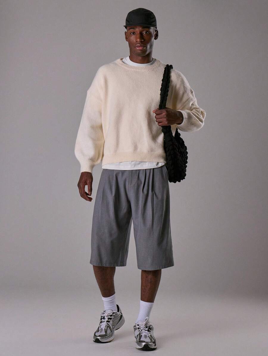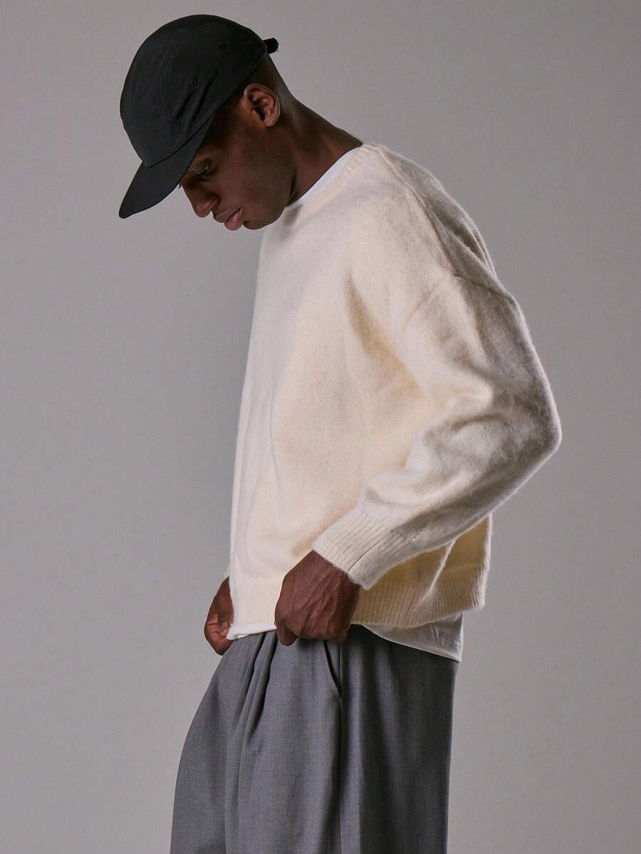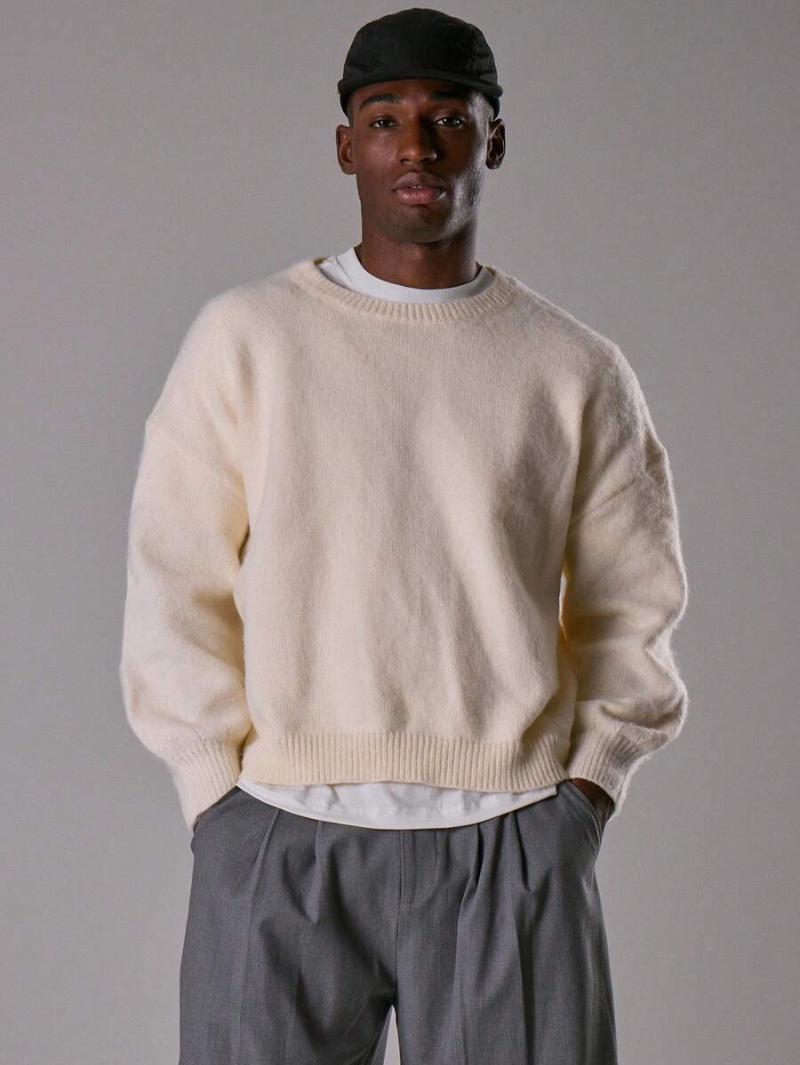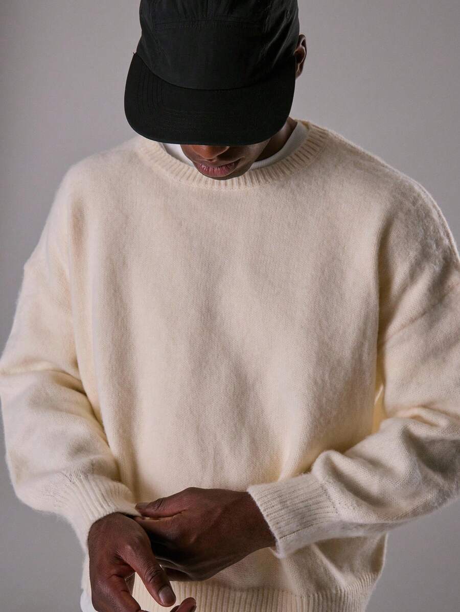 Stickad oversize mohairtröja med rund hals