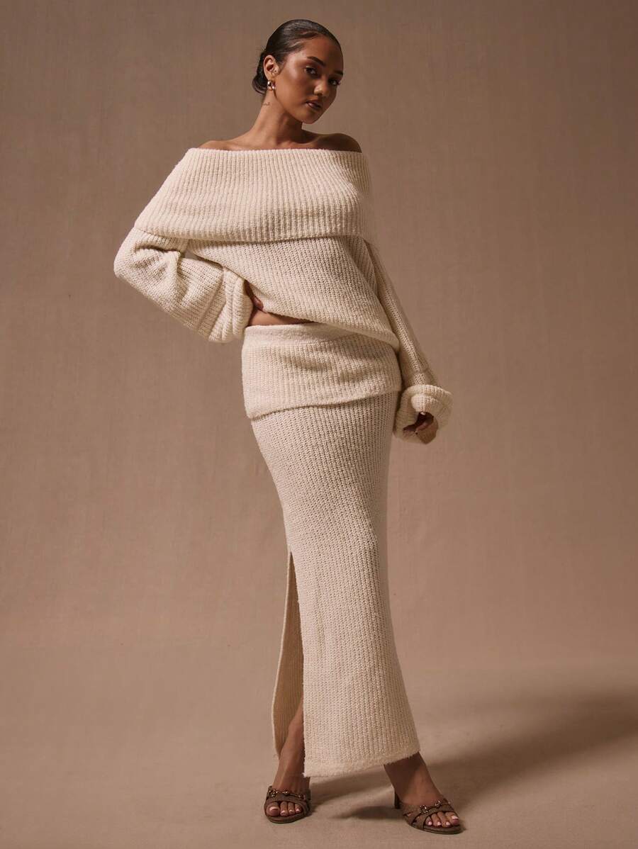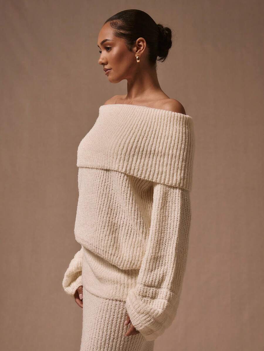 Stickad tröja med bara axlar